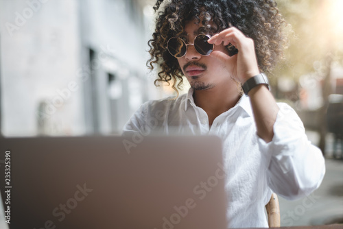 Young Asian Man Round Sunglasses Curly Stock Photo Edit Now