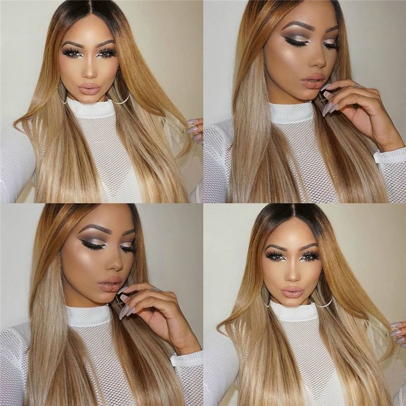 Ombre Straight Lace Front Wig 27 Honey Blonde Highlight Human