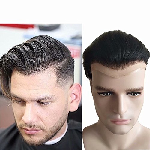 Black Mens Toupee Hair Pieces Real Toupee Hair System 100